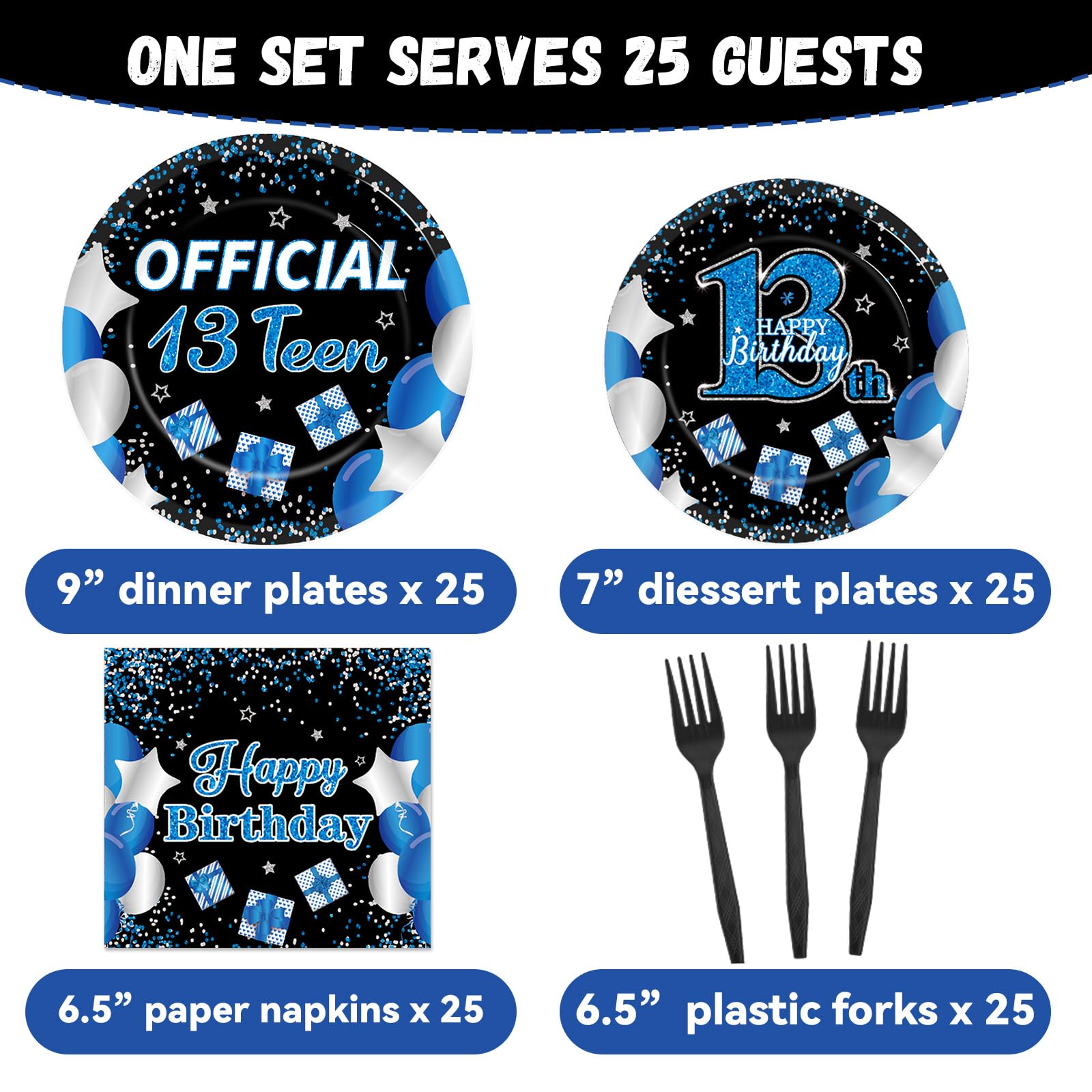 Amazon Com 25 Guests 13th Birthday Party Supplies Plates Napkins Forks Set Disposable Official Teenager 13th Tableware Paper Plates Dinnerware Decorations For Kids Boys Teenager Favors Home Kitchen