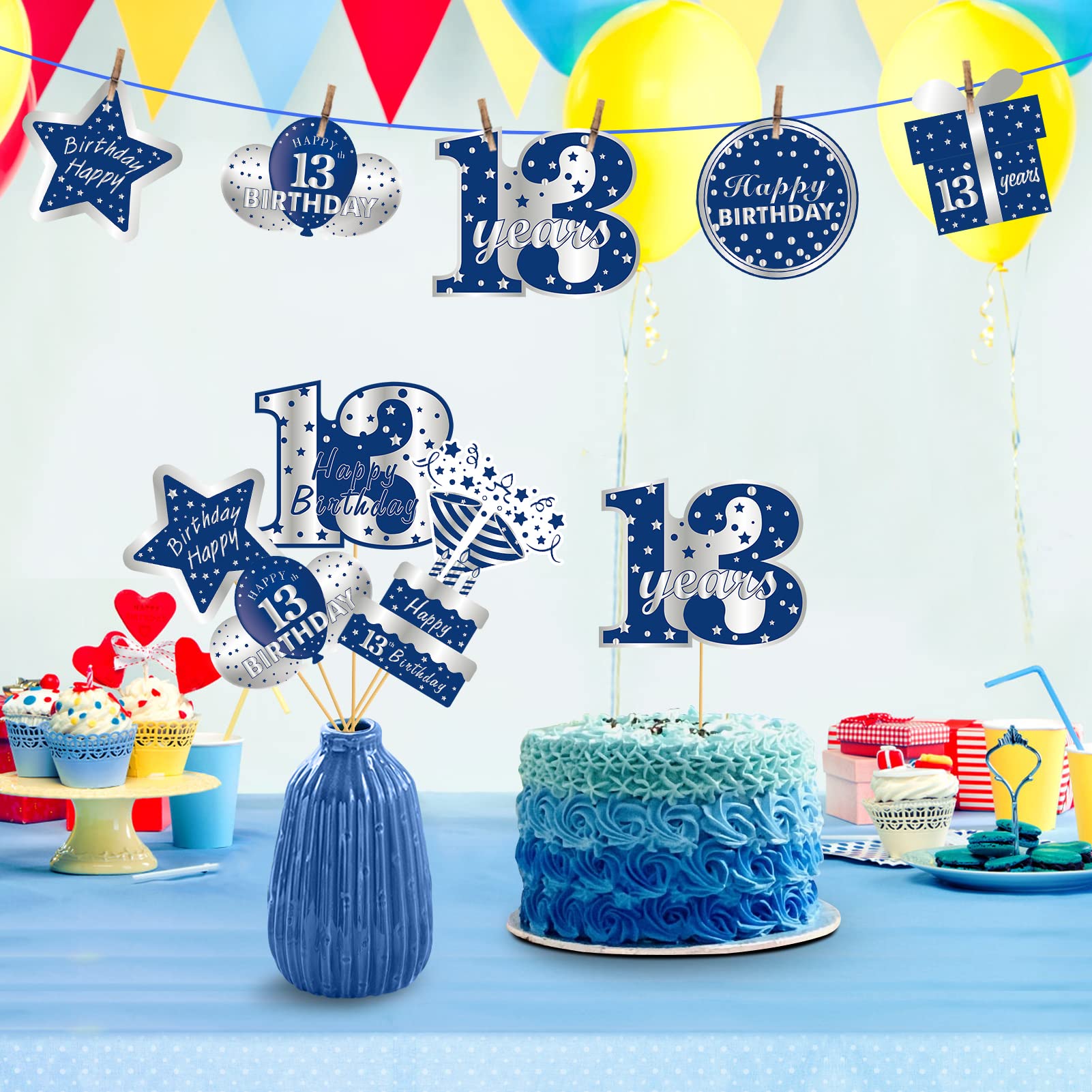 Amazon Com 24pcs Happy 13th Birthday Decorations Table Centerpiece Sticks For Boys Blue Silver 13 Year Old Birthday Table Topper Party Supplies Thirteen Birthday Photo Backdrop Decor Toys Games